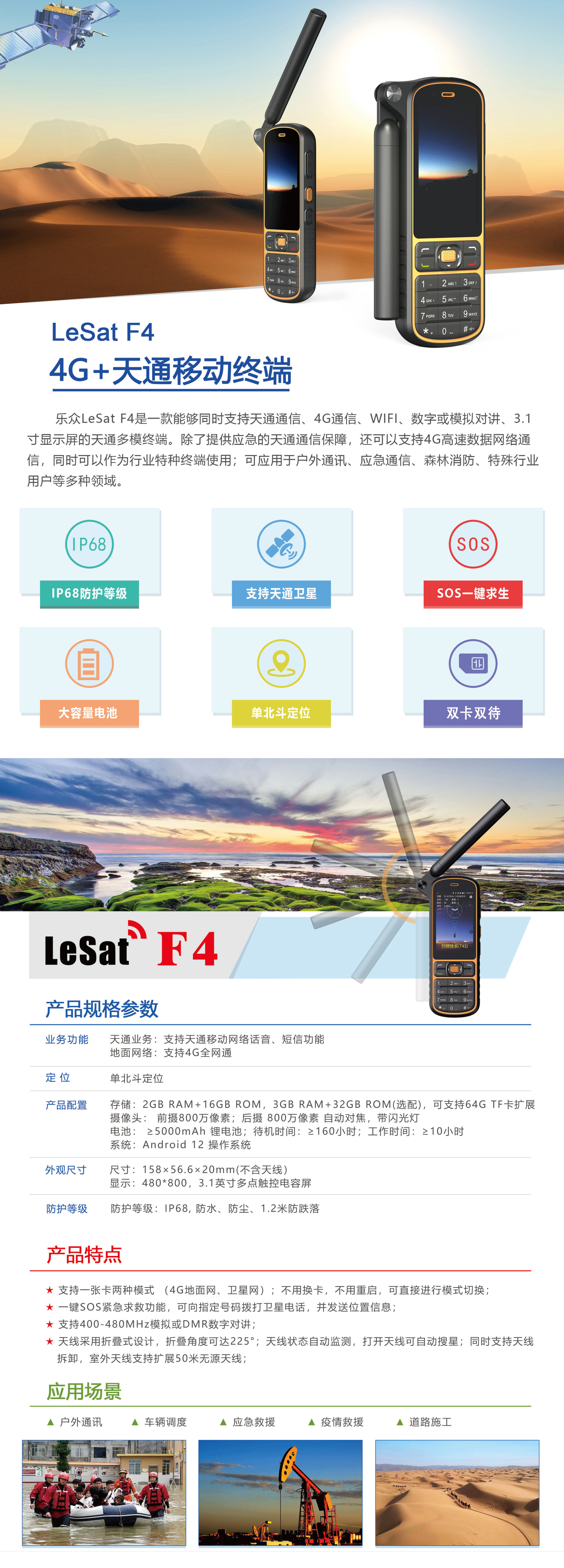 IP68防护等级 | 支持天通卫星 | SOS一键求生 | 大容量电池 | 单北斗定位 | 双卡双待