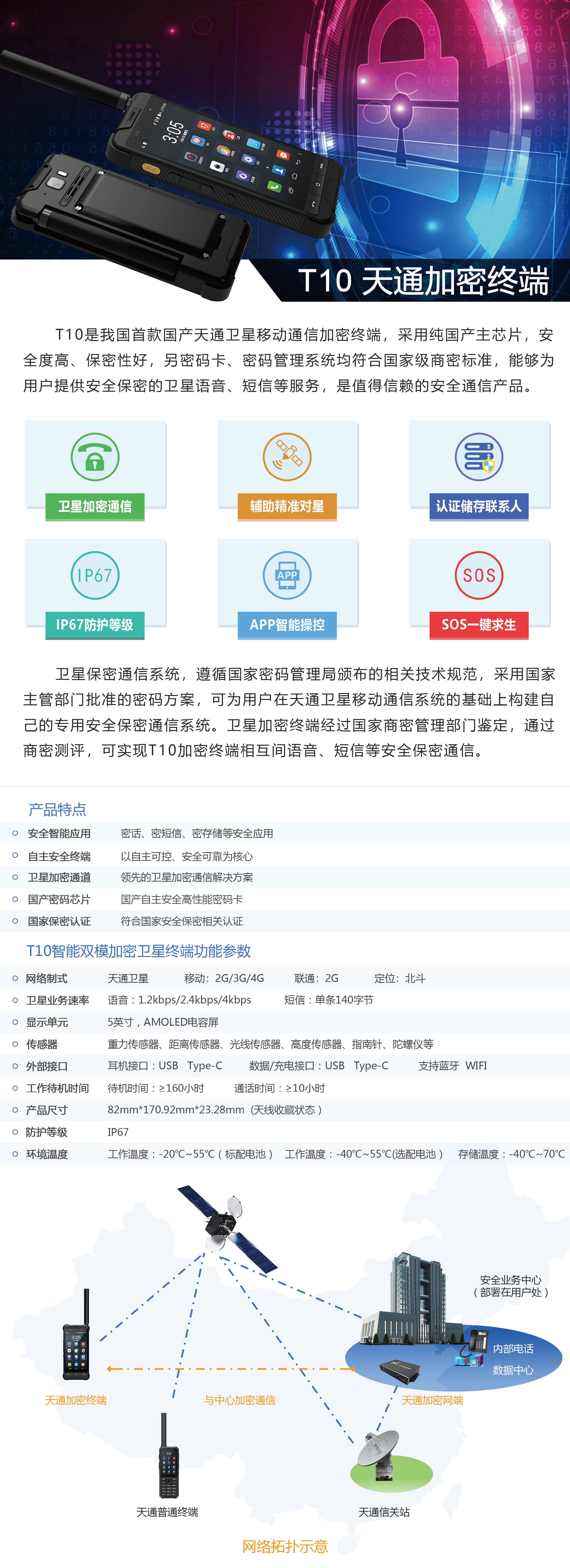卫星加密通信 | 辅助精准对星 | 认证储存联系人 | IP67防护等级 | APP智能操控 | SOS一键求生